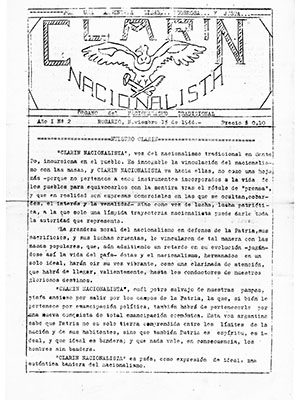 Clarín nacionalista fue publicada por filial de Rosario, Provincia de Santa Fe, de la Alianza Nacionalista Argentina...